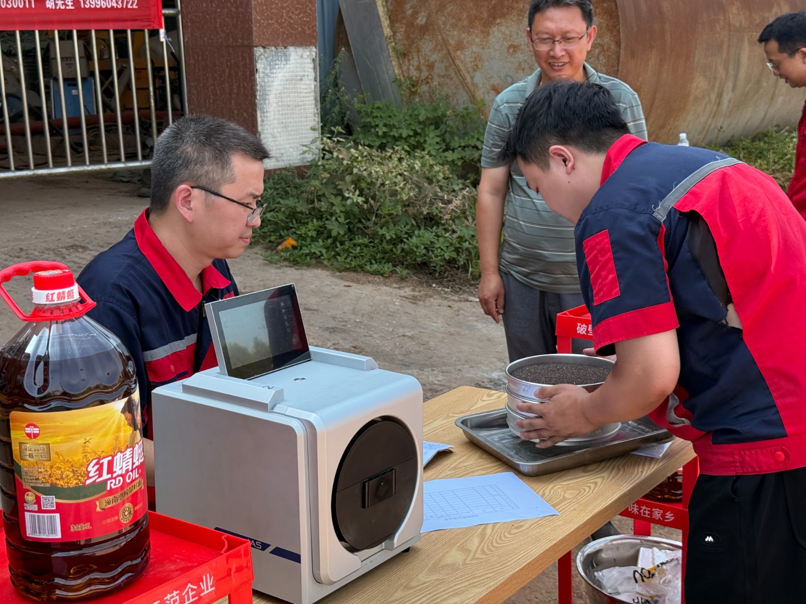 公司建立了“優(yōu)質(zhì)優(yōu)價(jià)”收購(gòu)體系,以“慶油3號(hào)”為例,對(duì)于符合收購(gòu)條件的菜籽,價(jià)格較普通菜籽上浮10%,且菜籽含油率每增加1%價(jià)格順加,實(shí)現(xiàn)綜合收購(gòu)價(jià)較市場(chǎng)價(jià)高出200元/噸。在收購(gòu)現(xiàn)場(chǎng),公司員工通過(guò)近紅外光譜儀現(xiàn)場(chǎng)快速檢測(cè)水分、含油率等指標(biāo),實(shí)現(xiàn)“田間直收+廠(chǎng)區(qū)掛牌”雙軌收購(gòu),5月20日至8月15日期間分階段收購(gòu),確保應(yīng)收盡收。